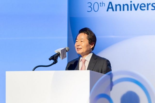 안랩 강석균 CEO가 안랩 창립 30주년 기념식에서 기념사를 하고 있다. 사진=안랩 제공