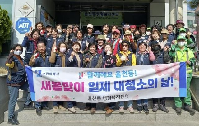 [와이뉴스] 수원시 장안구 율천동 행정복지센터는 지난 14일, 2025년 새봄을 맞이하여 쾌적한 주거 및 도심 환경을 조성하기 위하여 통장협의회와 환경관리원 및 직원 등 60여명이 함께 참여하여 관내 일제대청소를 실시했다.