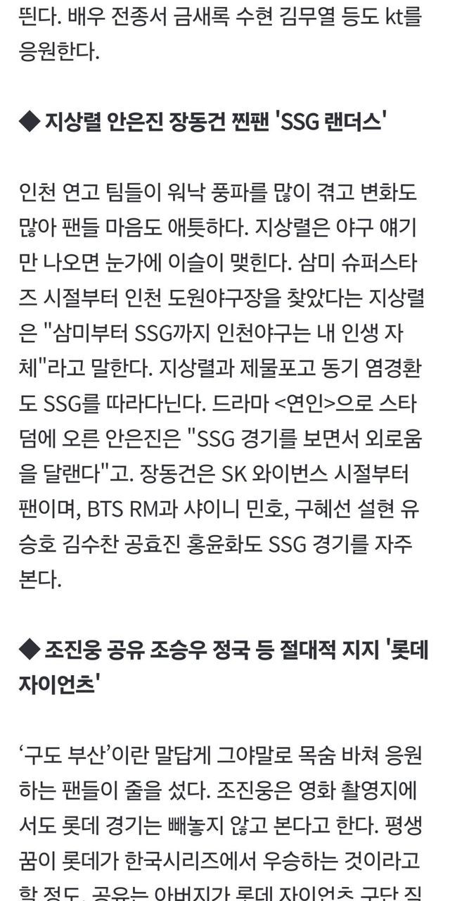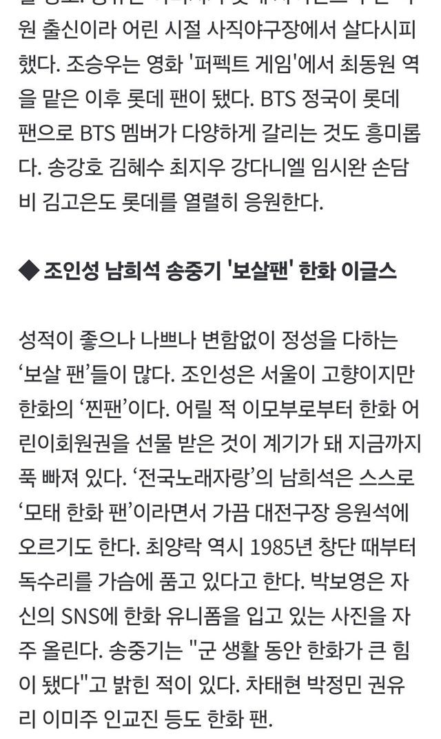 '내가 찐팬’...KBO 구단별 유명인 팬