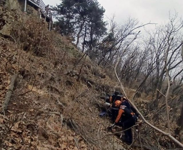 소방 당국 관계자는 “신고받고 출동했을 때 A씨는 산 정상에서 4m가량 떨어진 기울기 60도 정도 되는 비탈길에 누워 있었다. 응급처치를 하고 산악용 들것을 이용해 병원으로 옮겼다”라고 설명했다.