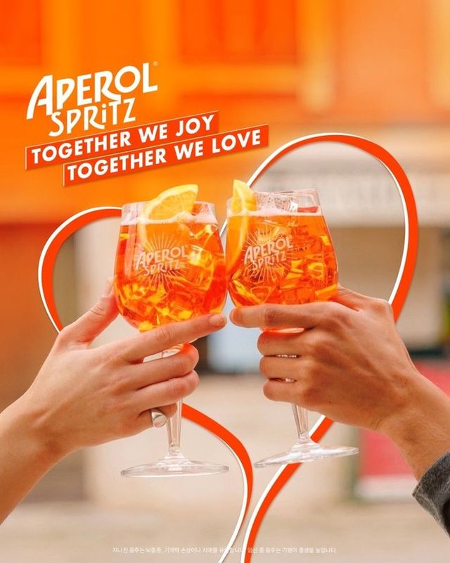 캄파리코리아는 밸런타인데이를 맞아 아페롤의 시그니처 컬러인 오렌지 색상을 강조한 스페셜 프로모션을 진행했다. 이탈리아 햇살을 연상시키는 오렌지 컬러와 달콤하면서 쌉쌀한 맛이 특징인 아페롤은 전 세계에서 음식을 먹기 전 식욕을 돋우기 위해 마시는 대표적인 식전주다. 아페롤에 스파클링 와인을 더해 즐기는 '아페롤 스프리츠'는 이탈리아 식전주 문화 '아페리티보'를 대표하는 칵테일로 매년 전 세계적으로 4억5000만잔이 팔렸다.
