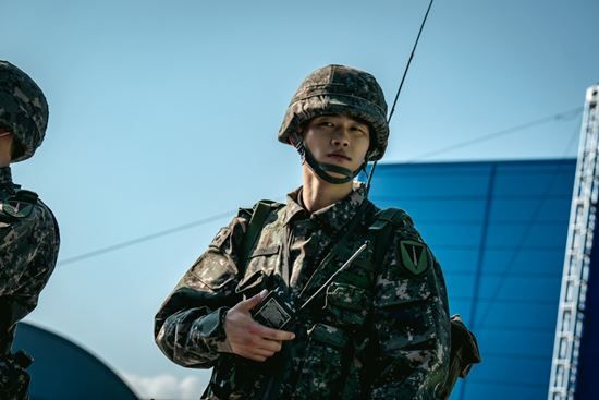 쿠팡플레이 시리즈 ‘뉴토피아’는 군인 남자친구 재윤(박정민 분)과 곰신 영주(지수0)가 좀비에 습격당한 서울 도심을 가로질러 서로에게 달려가는 이야기다. 극 중 김정진이 분한 ‘경식’은 방공부대 일소대 일병으로, 부대 내에서 신임받는 ‘에이급 모범 병사’다.