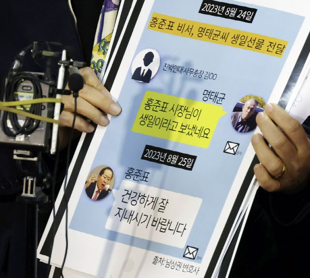 2023년 7월 10일에는 명 씨가 ‘무덥고 습한 날씨에 건강 조심하세요’라고 보낸 메시지에 홍 시장은 ‘명 사장 요즘 어떻게 지내나’라고 안부를 묻고, 명 씨는 ‘건강 잘 챙기세요’라고 답했다고 진상조사단은 주장했다.