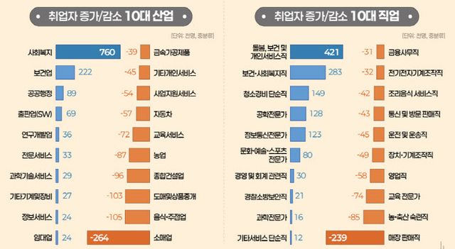 ◇취업자 증가 1위 ‘돌봄직’, 감소 1위 ‘매장판매직’