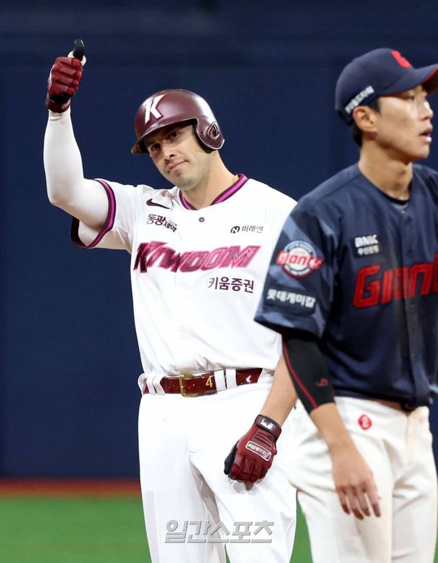 김윤하는 1회 초, 고승민과 빅터 레이예스에게 안타를 맞고 1점을 내줬다. 하지만 타선은 이어진 공격에서 카디네스가 롯데 선발 투수 박세웅을 상대로 내야 안타를 치며 출루한 뒤 이주형과 송성문이 각각 안타와 볼넷으로 만든 만루 기회에서 최주환이 희생플라이를 기록하며 1-1 동점을 만들었다.