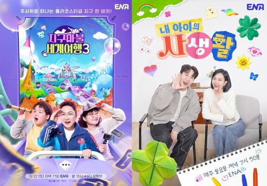‘지구마불 세계여행3’은 오는 22일 토요일 오후 7시 50분, ‘내 아이의 사생활’은 이튿날인 23일 일요일 오후 7시 50분 ENA에서 첫 방송된다.
