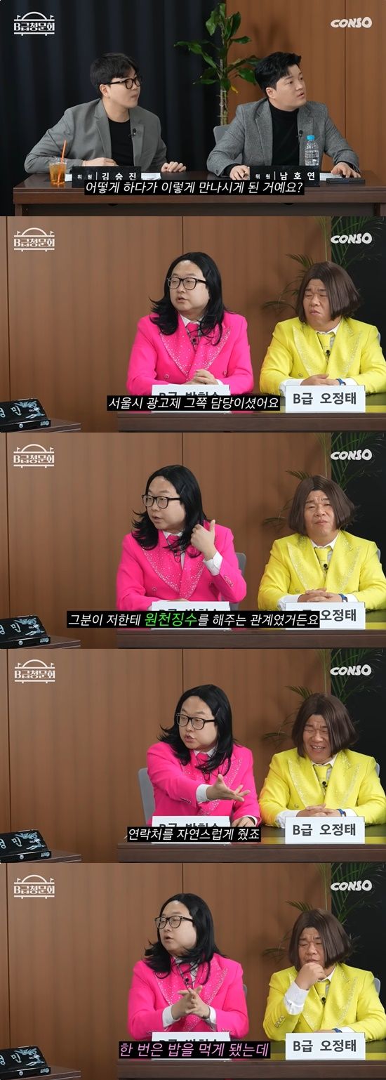 지난 14일 콘텐츠제작소 유튜브 채널에는 '개그와꾸 3대장 모셔봤습니다ㅋㅋ'라는 제목의 'B급청문회' 시즌2 90회 영상이 게재됐다. 이날 게스트로는 개그맨 박휘순, 오정태, 오지헌이 출연했다.