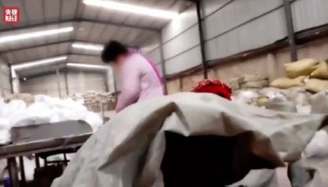 업체는 여러 톤 단위로 들어오는 산업 폐기물 중 비교적 온전한 편인 기저귀와 생리대를 선별한다. 중국 10위 내 생리대 업체인 ‘즈요우뎬’이나 유명 유아용품 업체인 ‘마이쿠쿠’의 상표도 잠입한 카메라에 포착됐다. 비위생적인 탁자 위에 옮겨진 폐기물들은 직원이 하나하나 두들겨 푹신한 상태로 되돌린 후 새 포장지에 채워 밀봉한다. 이 과정에 위생 및 살균 장비는 하나도 없었다.