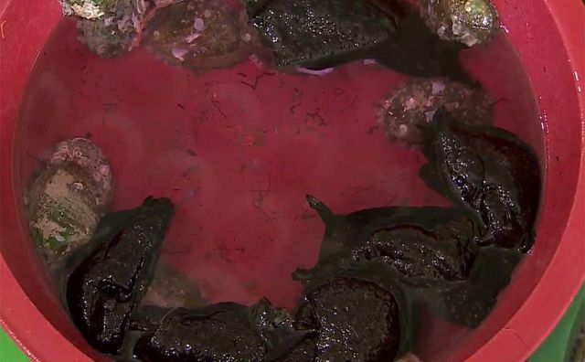 군소는 위협을 받으면 독이 든 보라색 먹물을 내뿜는다. 서양에선 이 먹물을 보라색 염료로 썼다.