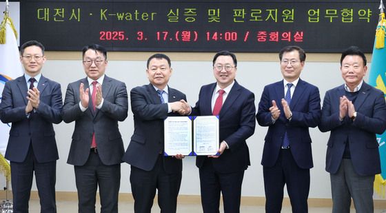 대전시는17일시청중회의실에서한국수자원공사(K-water)와중소·벤처기업의실증및판로지원을위한업무협약(MOU)을체결했다.