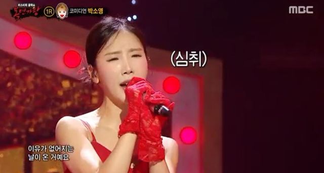 박소영은 "안녕하세요. 결혼한 지 3개월 된 따끈한 새댁 깜찍한 개그우먼 박소영입니다"라며 인사를 건넸고, "섭외를 받고 보컬 학원을 매일 다녔는데 성대가 부었다"며 아쉬워했다.