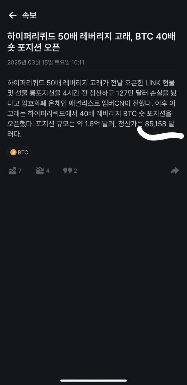 청산가가 다와가는 시점에서 40배숏친 고래가 숏에 추가금을 넣었고,