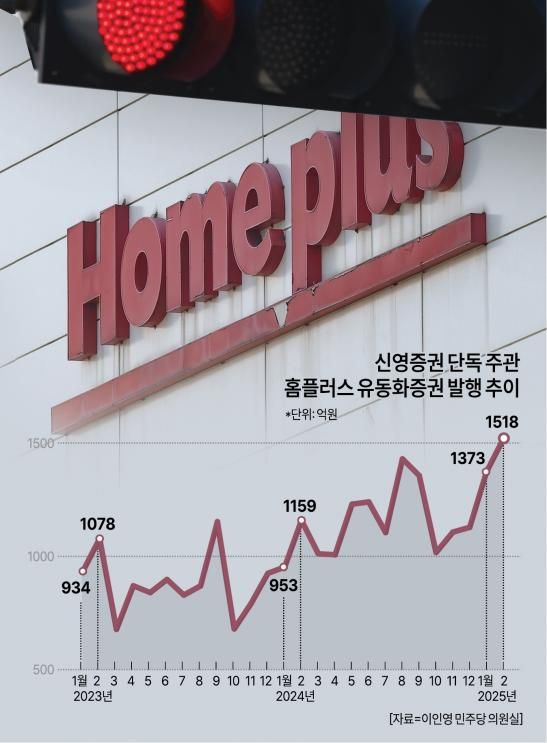 17일 국회 정무위원회 소속 더불어민주당 이인영 의원실이 입수한 신영증권의 2023∼2025년 월별 홈플러스 ABSTB·기업어음(CP)·단기사채 발행 현황에 따르면 지난달 홈플러스의 ABSTB 발행액은 1518억원으로 집계됐다. 최근 2년 새 가장 큰 규모다. 홈플러스가 이달 4일 기업회생을 신청한 점을 고려하면 직전까지도 ABSTB를 찍어낸 것이다.