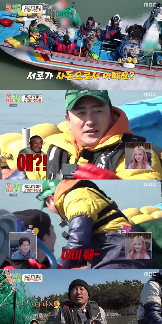 특급 식재료를 찾으러 모두가 배를 타고 이동했다. 김동준은 "서로가 사돈으로서 어떻냐"고 물었고, 안정환은 "얘?"라며 추성훈을 가리키더니 "아이 퉤!"라고 바다에 침을 뱉는 제스처를 취했다.