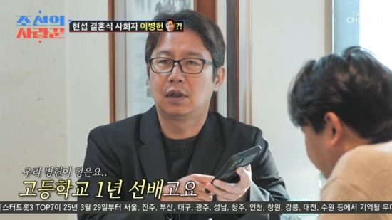 심현섭은 "십여 년 전에 영화 시사회에 갔는데 병헌 형이 왔다. '넌 결혼 안 하냐?' 해서 '할 때 되면 하겠지'라고 했다. (이병헌이) '형 꼭 불러라' 했다. 형이 사회 봐주실래요?' 했더니 '그럼' 하고 갔다"라며 일화를 공개했다.
