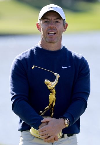 epa11970036 Rory McIlroy of Northern Ireland poses with the trophy after winning The Players Championship golf tournament at TPC Sawgrass in Ponte Vedra Beach, Florida, USA, 17 March 2025, following a playoff against J.J. Spaun of the US. EPA/ERIK S. LESSER