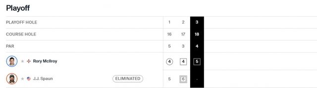 매킬로이는 버디, 보기, 보기였고, 스푼은 파, 더블파를 범하면서 경기가 끝났다.