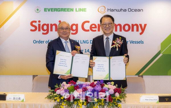 17일 업계에 따르면 한화오션은 세계 최대 해운사 중 하나인 대만의 에버그린으로부터 2조3000억원 규모의 2만4000TEU급 LNG이중연료추진 친환경 초대형 컨테이너선 6척을 수주했다.