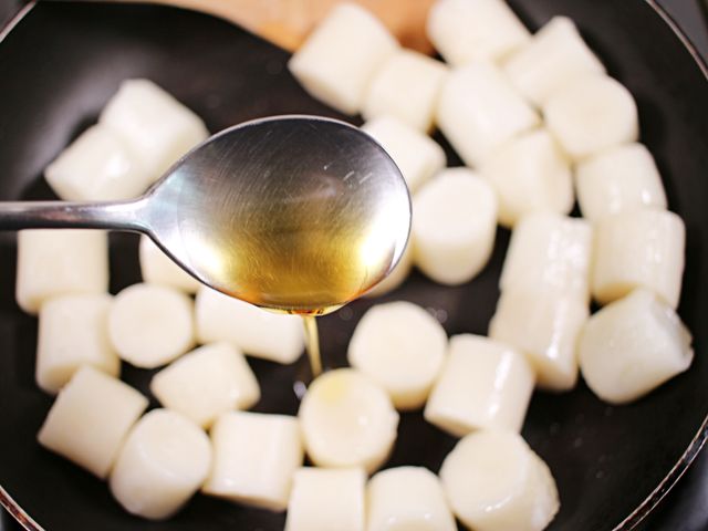 재료는 가래떡, 꿀, 참기름, 파마산치즈가루 준비해요.