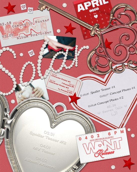 특히, 타임테이블 이미지에는 지난 17일 공개된 로고 모션에 이어 핑크빛 무드 위에 하트 모양 펜던트 등이 모습을 보여 눈길을 끈다. 사랑이 시작되는 설렘의 순간을 표현한 가운데, 'WANT'를 향한 기대감이 고조된다.
