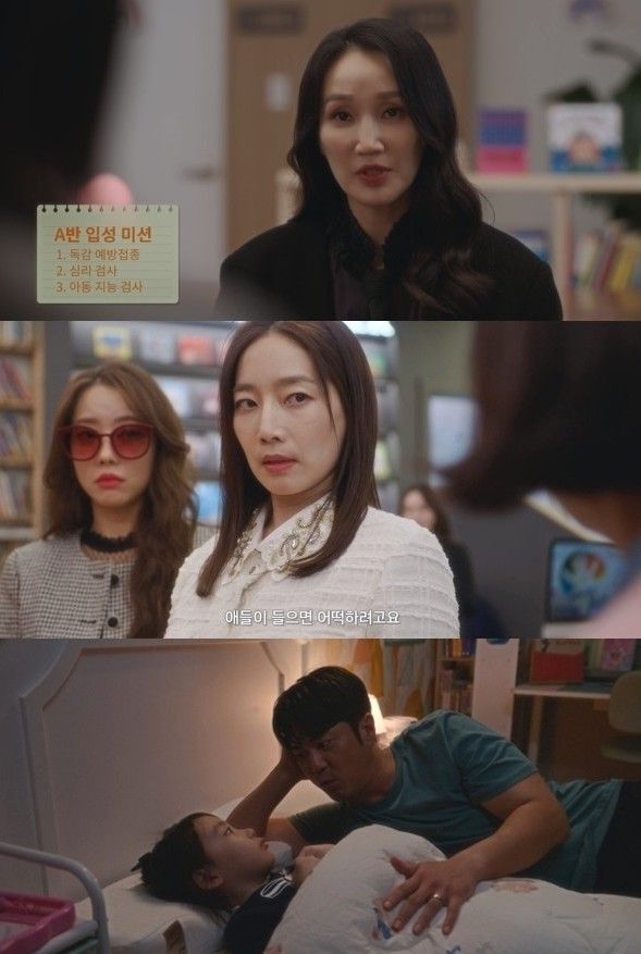 또 A반 엄마들을 불러들여 워킹맘인 정은을 견제하면서 A반 입성 미션을 줬다. 독감 예방 접종을 맞아야 했고, 서윤이 수업에 집중을 못하면 A반 애들이 피해를 받는다면서 심리 검사를 받으라고 했다. 마지막으로 영재원 아동 지능 검사에서 1%에 들어야 합격을 시켜준다고 했다.