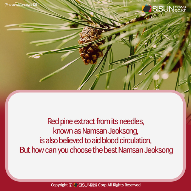Red pine extract from its needles, known as Namsan Jeoksong, is also believed to aid blood circulation. But how can you choose the best Namsan Jeoksong