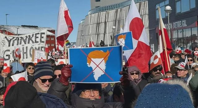 양키 고 홈 등장 그린란드의 수도 누크에서 열린 반 트럼프 집회