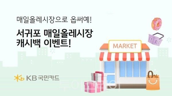 이 이벤트 기간 KB국민카드로 서귀포 매일올레시장에서 2만원 이상 결제 시 3천원 캐시백(행사기간 중 1회)을 제공하한다.