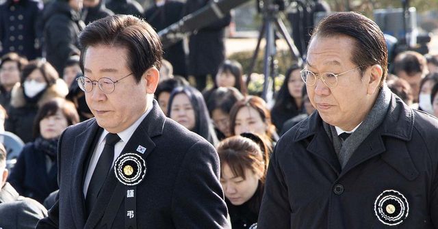 이재명 더불어민주당 대표(왼쪽)와 권영세 국민의힘 비상대책위원장이 1월 3일 오전 서울 여의도 국회에서 열린 고 김수한 전 국회의장 영결식에서 헌화를 하기 위해 발걸음을 옮기고 있다. / 뉴스1