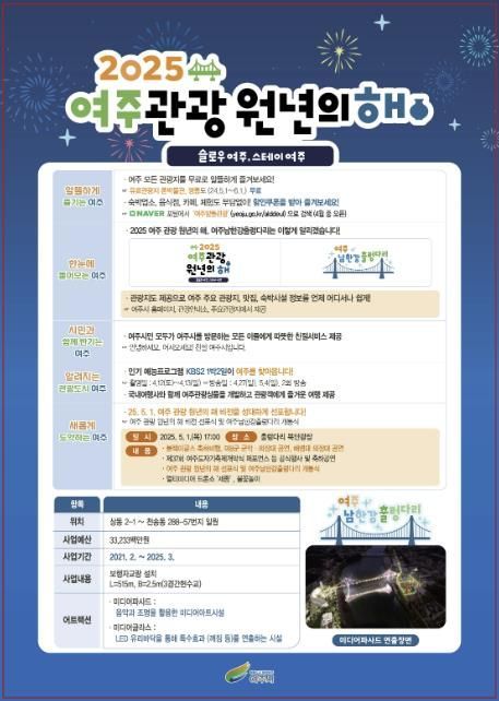 여주 최초 관광 랜드마크인 출렁다리 개통에 맞춰 올해를 여주 관광 원년의 해로 정하고 관광 인프라 개선을 통해 역사, 문화, 자연이 공존하는 대한민국 최고 관광도시로 도약하고자 하는 것이다.
