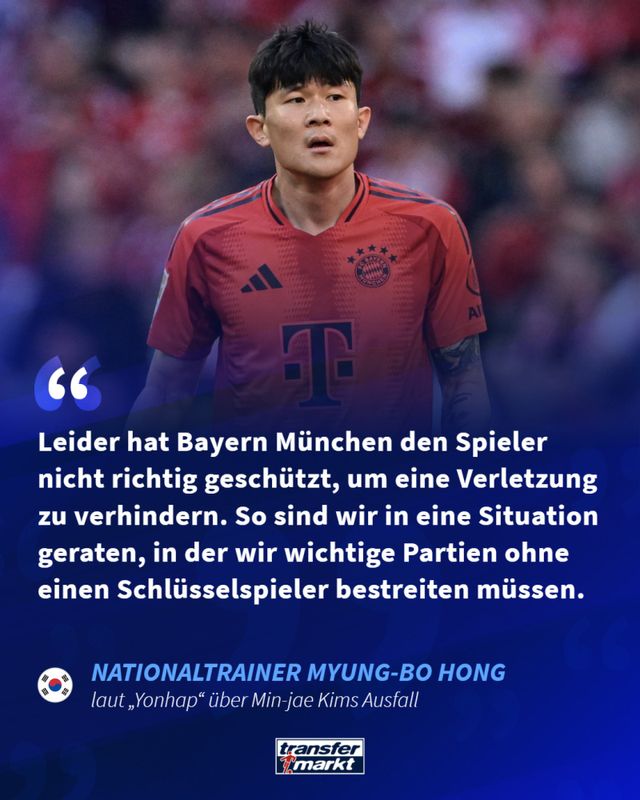 유럽 축구 통계 매체 트랜스퍼마르크트 독일판은 18일(한국시간) 소셜미디어(SNS)를 통해 김민재에 대한 홍명보 축구대표팀 감독의 발언을 조명했다.