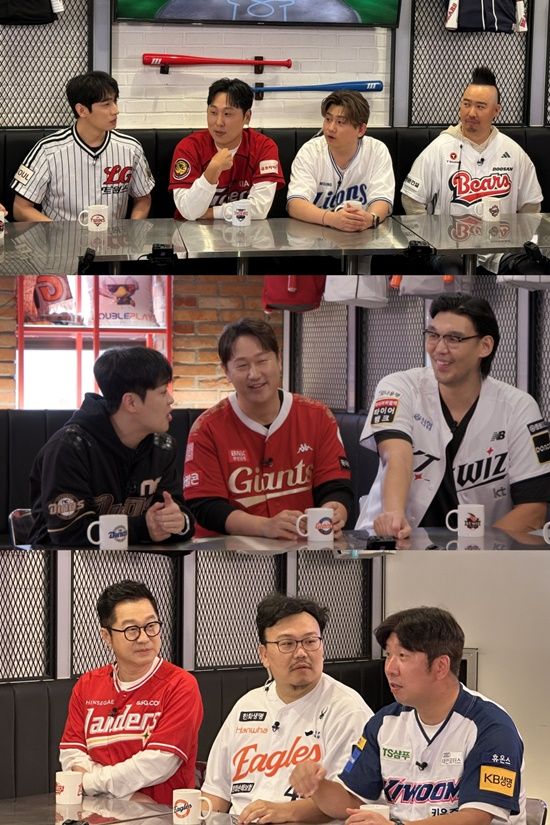 KIA 타이거즈의 윤석민, 삼성 라이온즈의 우디, 두산 베어스의 유희관, KT 위즈의 하승진, SSG랜더스의 지상렬, 롯데자이언츠의 이대호, 한화 이글스의 매직박, NC 다이노스의 김동하, 키움 히어로즈의 신재영이 지난 시즌에 이어 올 시즌에도 내 구단 자랑에 열을 올리며 팬심을 대변한다. 여기에 LG 트윈스의 열혈 팬으로 소문난 배우 윤박이 대표자로 새롭게 합류해 난장 토론 시작 전 KBO 리그 10개 구단 대표자들의 매력 포인트를 꼽아봤다.