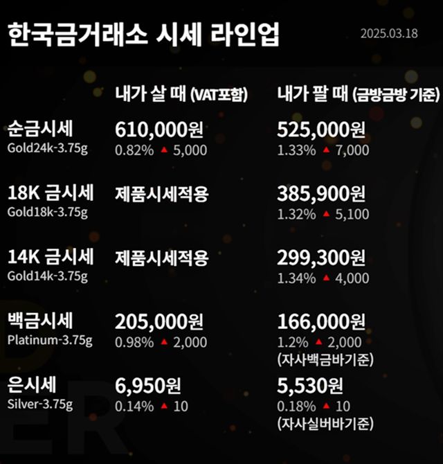 순금(24K) : 매입가 61만 원 / 매도가 52만 5000원