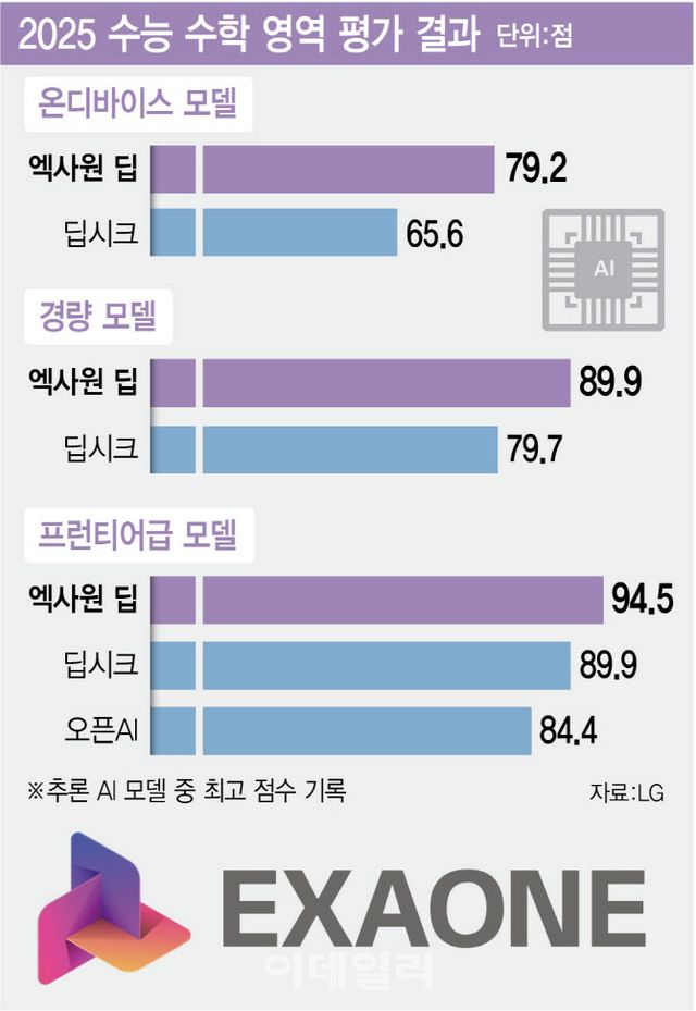 LG AI연구원은 향후 기업이 필요로 하는 전문 분야뿐만 아니라 물리와 화학 등 과학 연구와 교육 현장에서 활용도가 높아질 것으로 기대하고 있다. 다양한 성능 평가 결과 엑사원 딥-32B는 2025학년도 수능 수학 영역에서 94.5점으로 최고점을, 선택과목(확률과 통계, 미적분, 기하) 모두에서 1등급을 달성했다. 수학 문제 해결 능력을 평가하는 지표인 수학(MATH)-500은 95.7점을 기록했다.