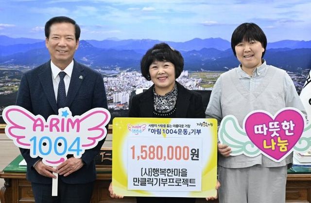 또한, 인류의 행복을 위한 명상 공동체 조성을 목표로 활동하고 있는 (사)행복한 마을은 공공생활 수익금 158만 원을 기탁하며 2020년과 2024년에 이어 아림 1004운동에 힘을 보탰다.