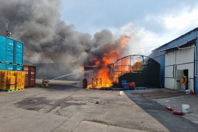 제주소방안전본부에 따르면 이날 오후 3시 6분쯤 서홍동의 한 선과장 창고에서 화재 신고가 접수됐다. 불은 3시 54분쯤 모두 진화됐는데, 창고용 비닐하우스 약 100㎡와 컨테이너 1000여 개가 소실됐다.