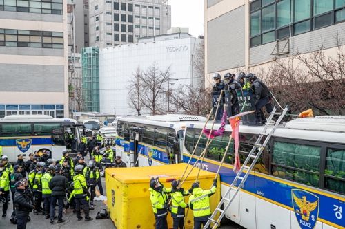서울경찰청은 헌법재판소의 윤석열 대통령 탄핵심판 선고를 앞두고 18일 경찰관기동대 합동 연합훈련을 실시했다고 밝혔다. 사진은 경찰이 탄핵선고에 대비해 연합 훈련하는 모습. 2025.3.18 [서울경찰청 제공. 재판매 및 DB 금지]