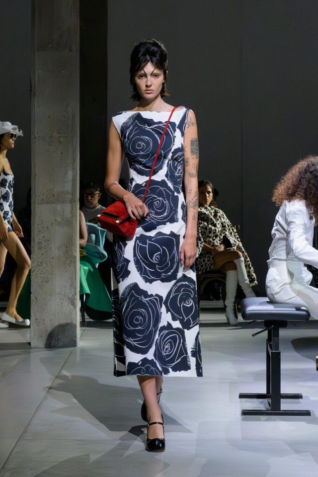 FAVORITE LOOK 하트 여왕이 연상되는 화려한 장미 프린트 원피스. 마르니 특유의 추상적인 패턴과 색채미가 돋보인다.