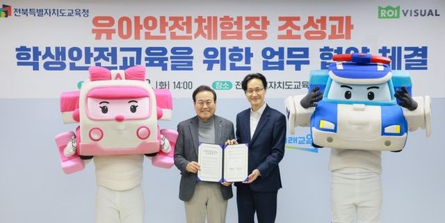 전북교육청은 이날 인명구조 애니메이션 로보카폴리를 제작한 ㈜로이비쥬얼(대표 이동우)와 유아안전체험장 조성과 어린이 안전교육을 위한 업무협약을 체결했다.