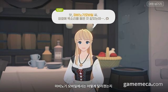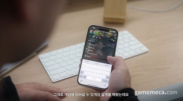 이를 위해 제작진은 가로와 세로 모두에서 편하게 할 수 있게 제공하자는 점에 초점을 맞췄다. 특히 세로 화면에서는 채팅의 경우 카카오톡이나 디스코드와 같은 메신저 앱을 사용하는 감각을 마비노기 모바일에서도 그대로 이어갈 수 있도록 설계했다. 이와 함께 공개된 플레이 장면을 보면 평상시에 메신저 앱과 비슷한 방식으로 채팅을 나눌 수 있다는 점을 확인할 수 있다.