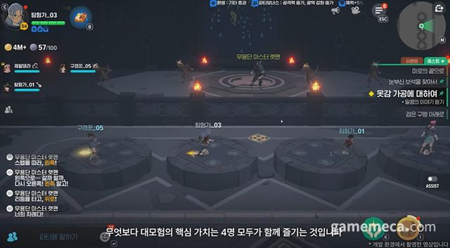 ▲ 4명이 힘을 합쳐 퍼즐을 풀고, 몬스터를 물리치는 협동 콘텐츠 '대모험' (사진출처: 마비노기 모바일 영상 갈무리)
