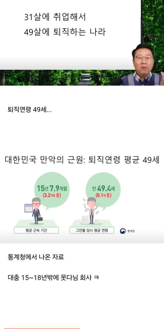 대부분의 회사원은 31세에 취직해서 49세에 짤림