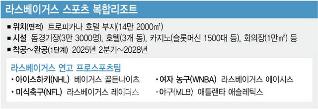 라스베이거스에 스포츠 IR이 들어서는 건 프로 스포츠 연고팀이 잇달아 창단하면서 연중 스포츠 관람이 가능해졌기 때문이다. 라스베이거스에선 2017년 첫 지역 연고 프로팀인 내셔널 아이스하키리그(NHL) ‘베이거스 골든나이츠’에 이어 2020년 아메리칸 풋볼리그(NFL) 소속 ‘라스베이거스 레이더스’가 창단했다. 최근엔 MLB에 이어 전미농구협회(NBA) 연고팀 탄생도 가시화되고 있다. 라스베이거스에선 2007년 NBA 올스타전에 이어 지난해 2월 NFL 100년 역사상 처음으로 전미 최대 스포츠 이벤트 중 하나인 ‘슈퍼볼’이 개최됐다.