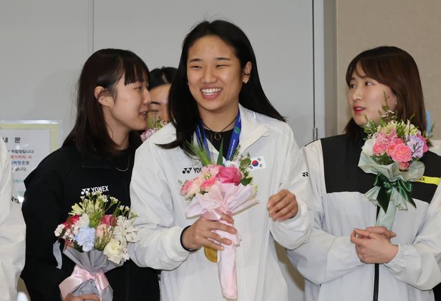 유럽 원정에서 금메달 2개를 획득한 '배드민턴 여제' 안세영이 18일 인천 국제공항을 통해 귀국했다. 그는 지난 9일 오를레앙 마스터스에 이어 세계배드민턴연맹(BWF) 월드 투어 중 가장 권위 있는 대회인 전영 오픈에서도 정상에 올랐다. 전영 오픈은 2년 만에 챔피언 탈환이이었다. 그는 한국 선수 최초로 이 대회 여자단식 2회 우승자로 이름을 올리기도 했다.