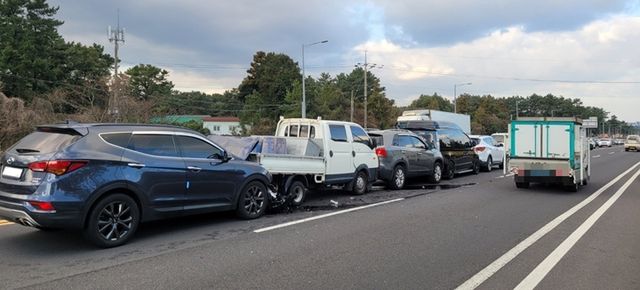 [한라일보] 출근길 제주의 한 도로에서 연쇄 추돌사고가 발생해 2명이 다쳤다.