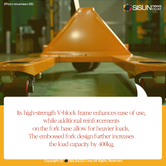 Its high-strength V-block frame enhances ease of use, while additional reinforcements on the fork base allow for heavier loads. The embossed fork design further increases the load capacity by 400kg.