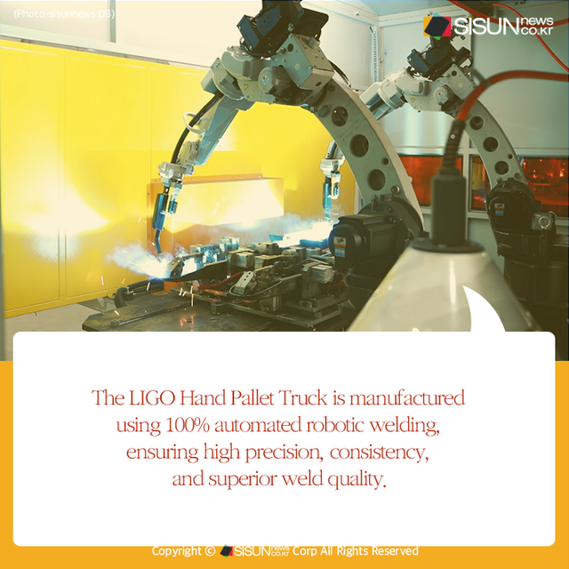 The LIGO Hand Pallet Truck is manufactured using 100% automated robotic welding, ensuring high precision, consistency, and superior weld quality.