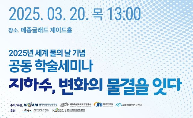 [한라일보] 제주연구원, 한국지질자원연구원, 제주특별자치도개발공사는 제주 지하수의 보전·관리와 지속 가능성을 위해 오는 20일 오후 1시 제주 메종글래드 제이드홀에서 2025 세계 물의 날(3월 22일) 기념 공동 학술 세미나를 개최한다.