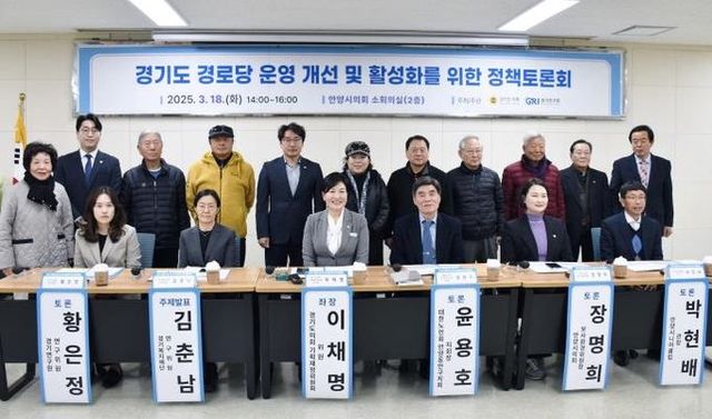 또한, 김도현 안양시의원이 사회를 맡아 토론이 원활하게 진행될 수 있도록 이끌었으며, 이재정 국회의원, 김진경 경기도의회 의장, 최종현 더불어민주당 대표의원, 김정호 국민의힘 대표의원, 박충훈 경기연구원 원장 대행은 서면 축사를 통해 경로당 운영 개선과 활성화를 위한 정책적 노력이 필요하다고 강조했다.