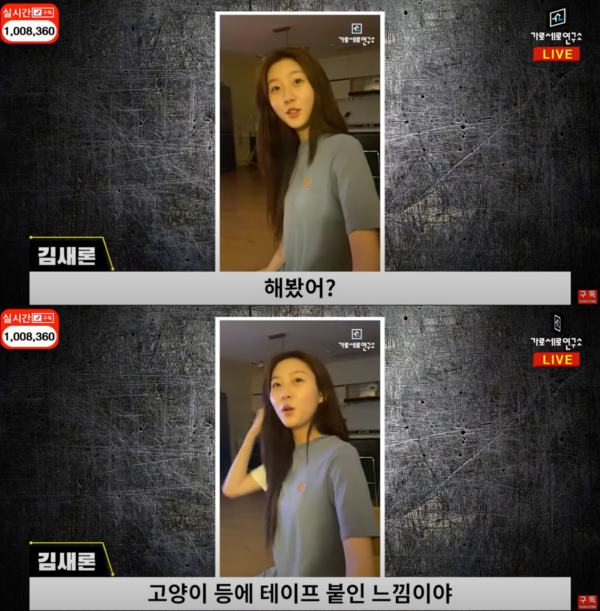 이후 김새론이 카메라를 향해 "나 찍어 계속?"이라고 말하며 웃었고, 남성은 말을 얼버무리며 영상이 끝났다.